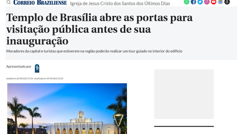 Templo de Brasília é assunto no Correio Braziliense e no Metrópoles